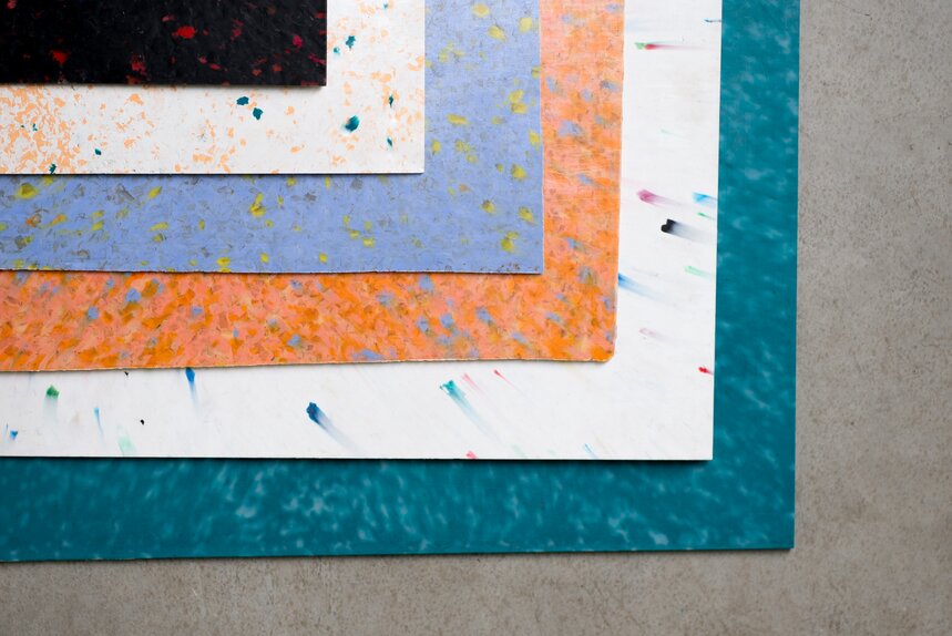 Resak fabrique des panneaux en plastique recyclé de différentes couleurs. ©Mathilde Raison