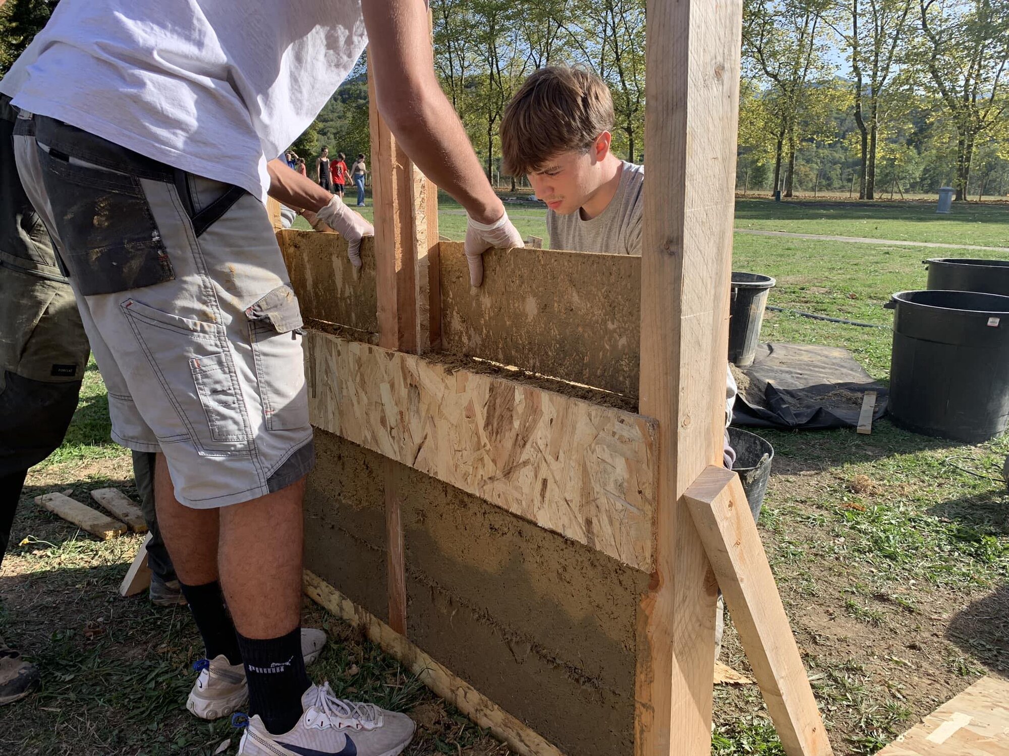 Cette association existe depuis 2017. Son but : participer à la résilience d'un territoire à travers l'émergence d'initiatives locales, écologiques, sociales et solidaire ; notamment par le biais de la sensibilisation, de l'accompagnement et de la formation aux métiers de la transition écologique. Tiens, tiens. Et ces métiers de la transition, tu saurais nous en citer quelques-uns Vianney ? Le maraîchage, oui, la mobilité douce, bien-sûr, mais aussi… l’ éco-construction. Nous y sommes.