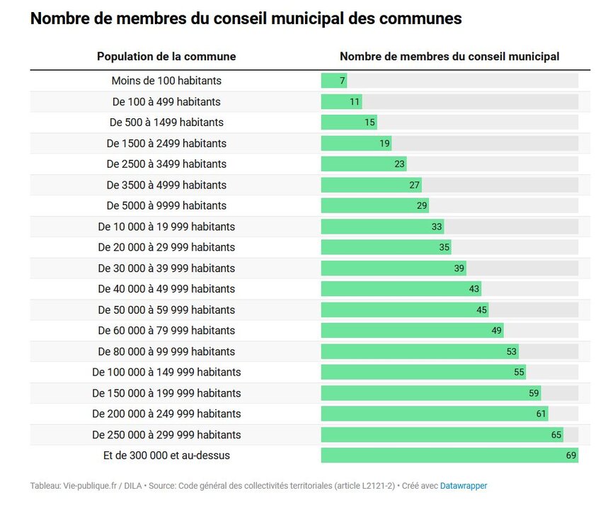 Tout dépend de la taille de la commune dans laquelle vous habitez. Mais si vous voulez une fourchette, rappelez de la chanson de Juju : “de 7 à 77 …gens”. Et si la réponse n’est pas assez précise, pas de problème, il suffit de demander ça poliment :